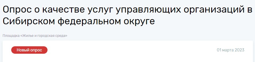 Министерством строительства и жилищно-коммунального хозяйства Российской Федерации совместно с Общероссийским народным фронтом проводится онлайн-опрос населения по вопросу деятельности управляющих компаний.