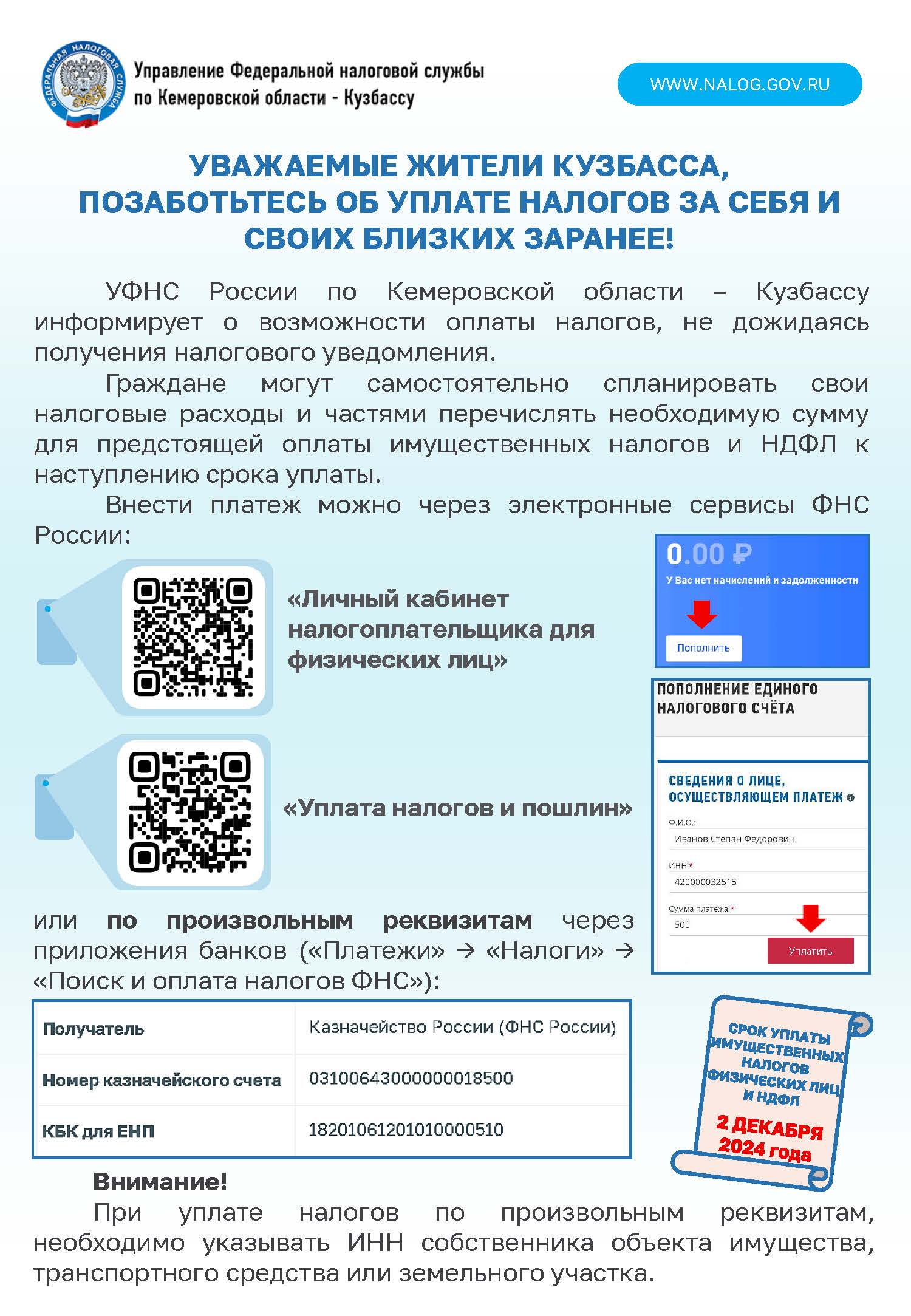 В этом году налоговые уведомления для уплаты имущественных налогов получат около одного миллиона жителей Кемеровской области – Кузбасса.