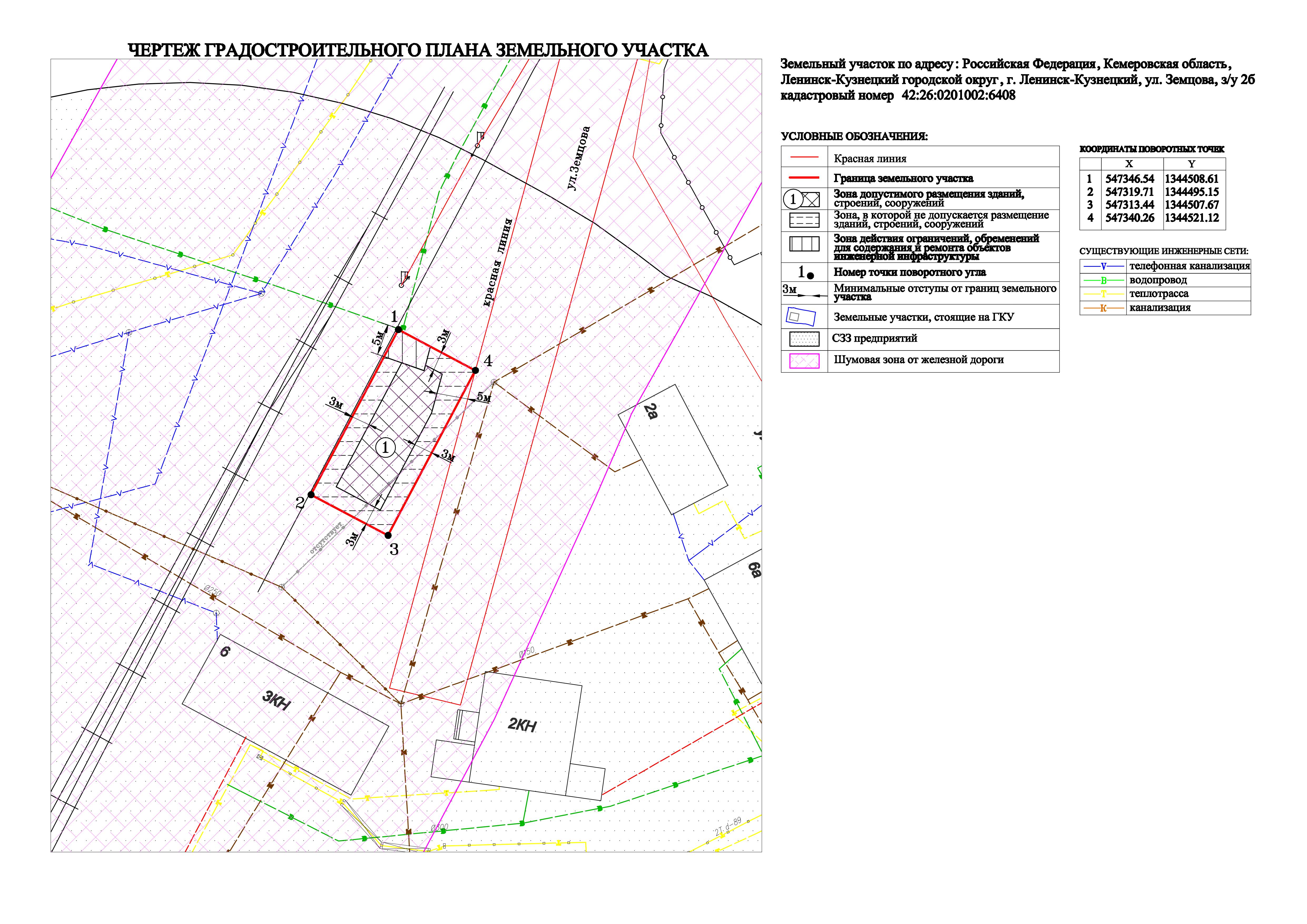 Администрация Ленинск-Кузнецкого городского округа и Герасимчук Г.В. сообщают о начале публичных слушаний по вопросу предоставления разрешения на отклонение от предельных параметров разрешенного строительства объекта капитального строительства на земельном участке с кадастровым номером 42:26:0201002:6408 площадью 420 кв.м по адресу: Российская Федерация, Кемеровская область, Ленинск-Кузнецкий городской округ, г.Ленинск-Кузнецкий, ул.Земцова, з/у 2б (сокращение минимальных отступов от границ земельного участка от точки 2 до точки 1 с 3 м до 1 м, от точки 2 до точки 3 с 3 м до 1 м на градостроительном плане земельного участка, уменьшение отступа от красной линии с 5 м до 3 м).