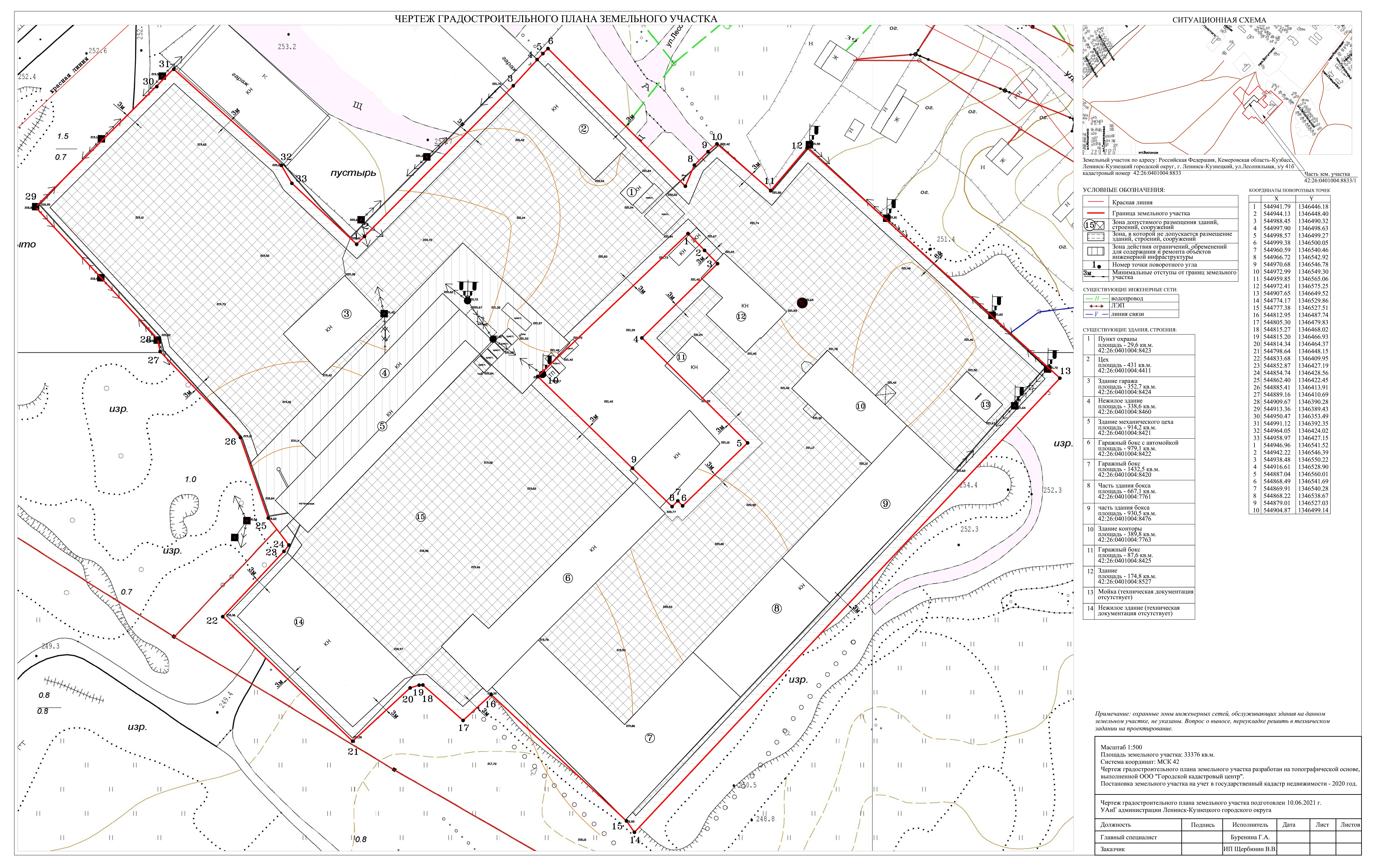 Администрация Ленинск-Кузнецкого городского округа сообщает о начале общественных обсуждений по вопросу предоставления разрешения на отклонение от предельных параметров разрешенного строительства, реконструкции объекта капитального строительства на земельном участке с кадастровым номером 42:26:0401004:8833, расположенном по адресу: Российская Федерация, Кемеровская область – Кузбасс, Ленинск-Кузнецкий городской округ, город Ленинск-Кузнецкий, улица Лесопильная, з/у 41б, в части изменения места допустимого размещения строений, зданий, сооружений – уменьшение минимальных отступов от границ земельного участка от точки 14 до точки 29 с 3 м до 0 м на градостроительном плане земельного участка.