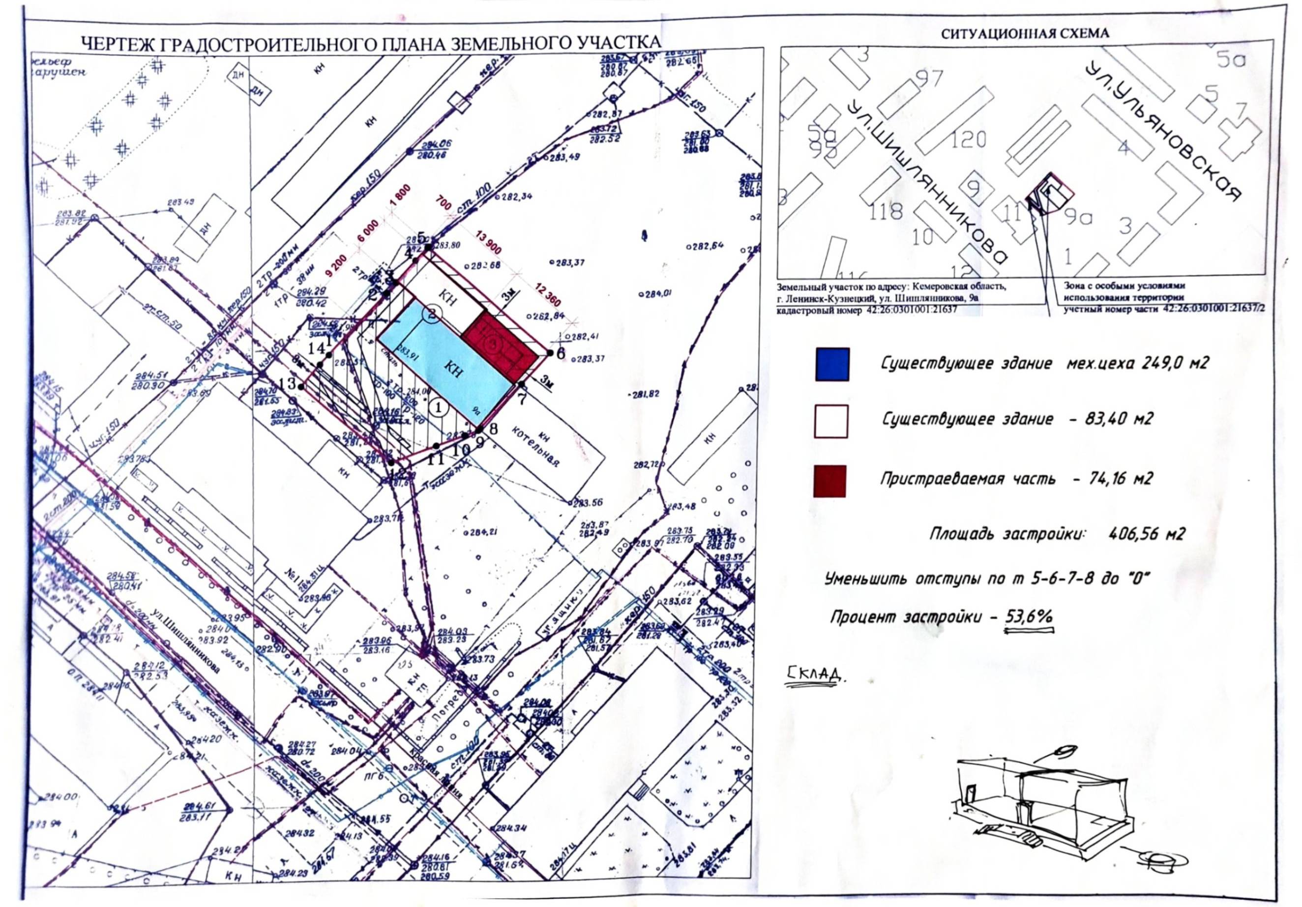 Администрация Ленинск-Кузнецкого городского округа сообщает о начале публичных слушаний по вопросу предоставления разрешения на отклонение от предельных параметров разрешенного строительства, реконструкции объекта капитального строительства на земельном участке с кадастровым номером 42:26:0301001:21637 по адресу: Кемеровская область, г.Ленинск-Кузнецкий, ул.Шишлянникова,9а, в части изменения места допустимого размещения зданий, строений, сооружений – уменьшение минимальных отступов от границ земельного участка от точки 5 до точки 8 с 3 м до 0 м на градостроительном плане земельного участка, увеличение максимального процента застройки в границах земельного участка с 50 % до 53,6 %.