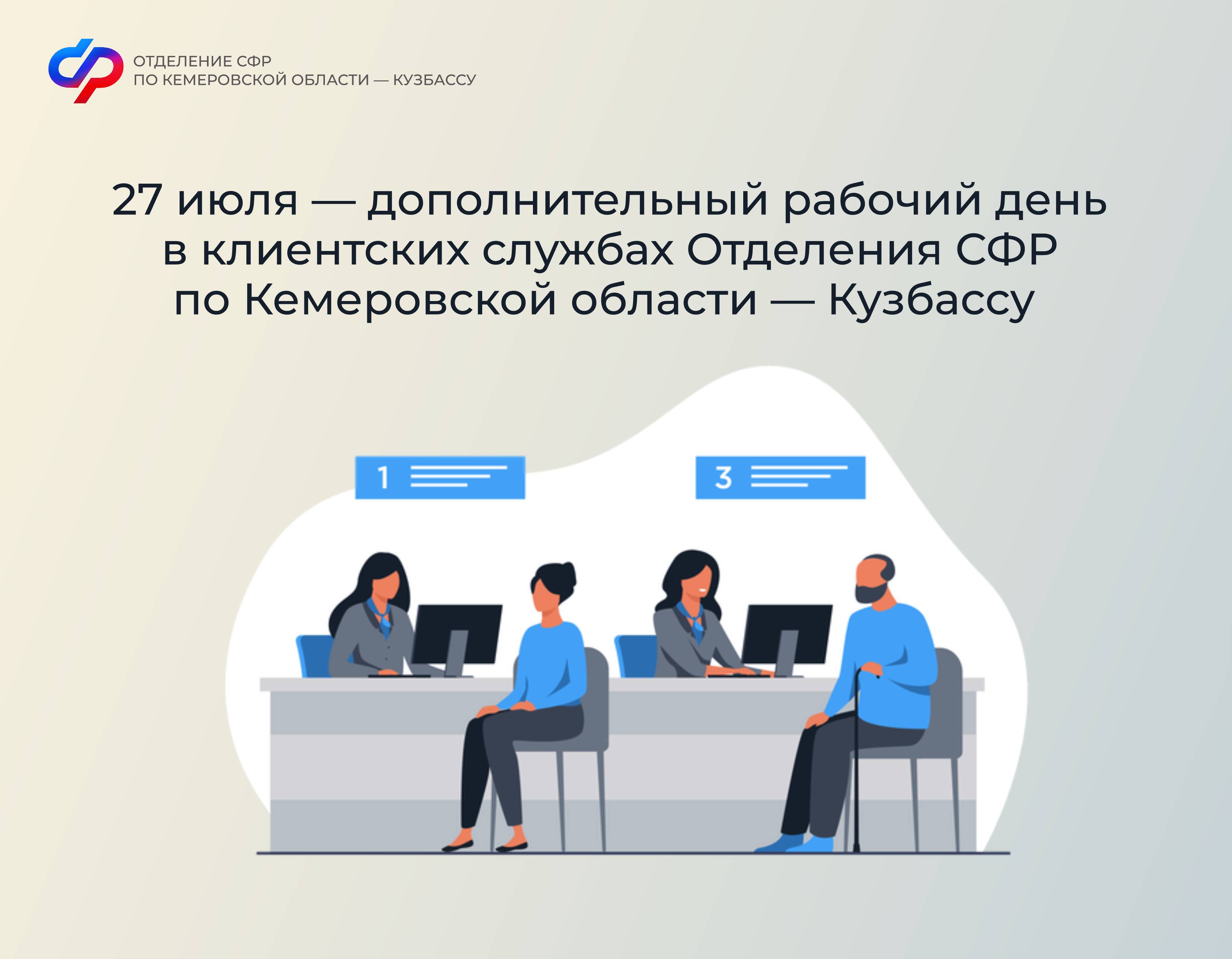 27 июля – дополнительный рабочий день в клиентских службах Отделения СФР по Кемеровской области – Кузбассу