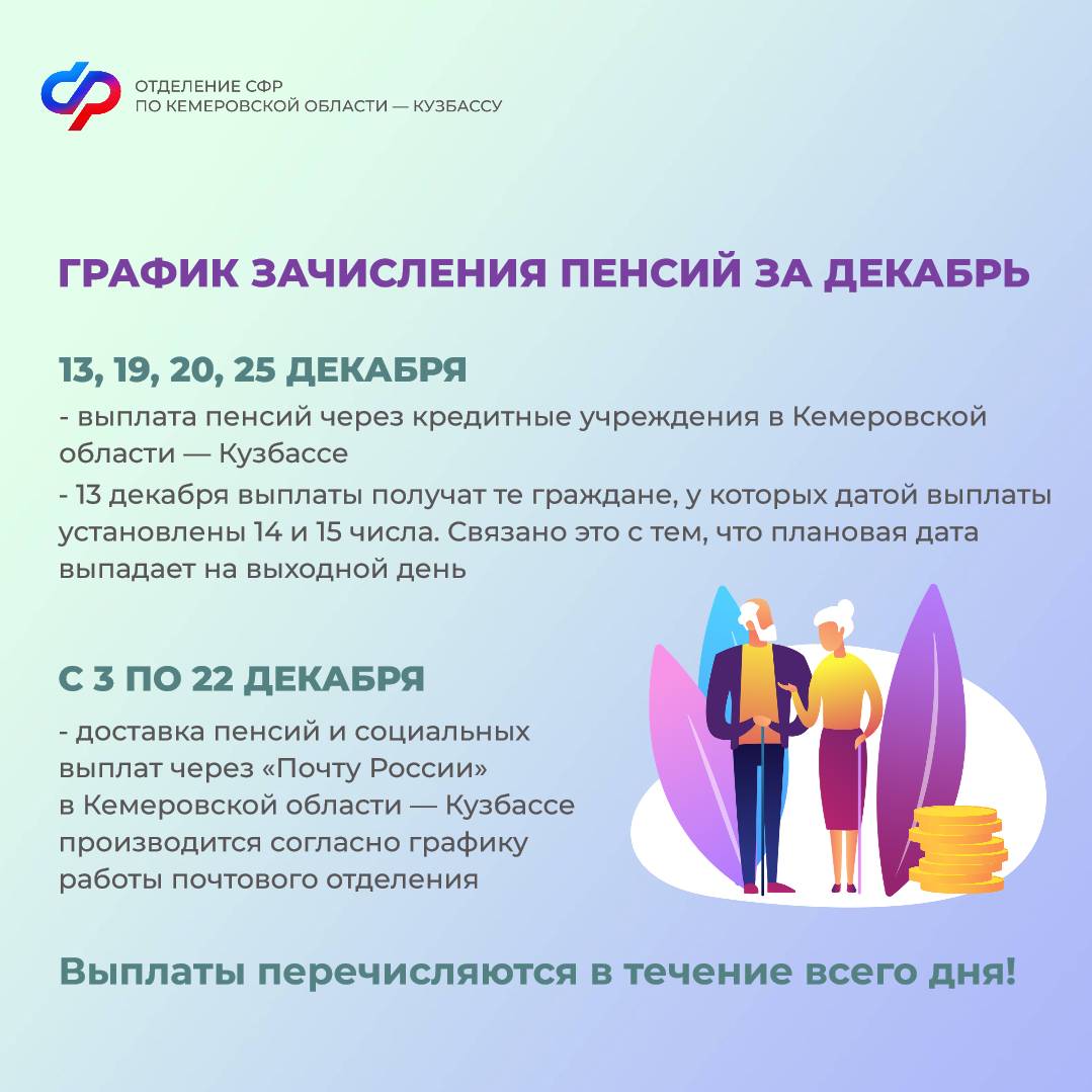 В это воскресенье уже наступит декабрь, и мы публикуем график выплат для получателей детских пособий и пенсий в Кемеровской области – Кузбассе.