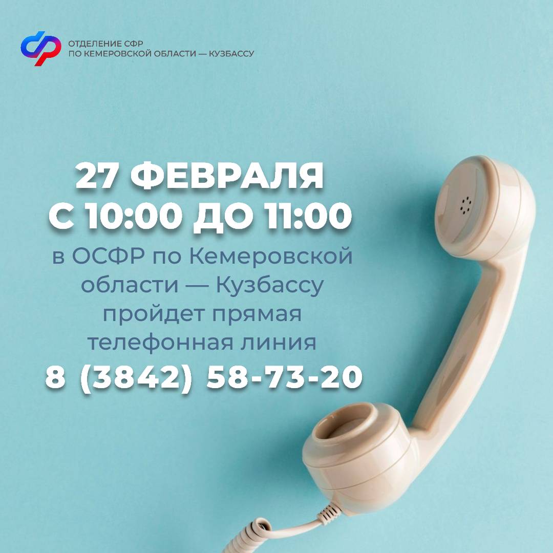 27 февраля, в четверг, с 10 до 11 часов в Отделении Социального фонда по Кемеровской области – Кузбассу пройдет телефонная прямая линия.