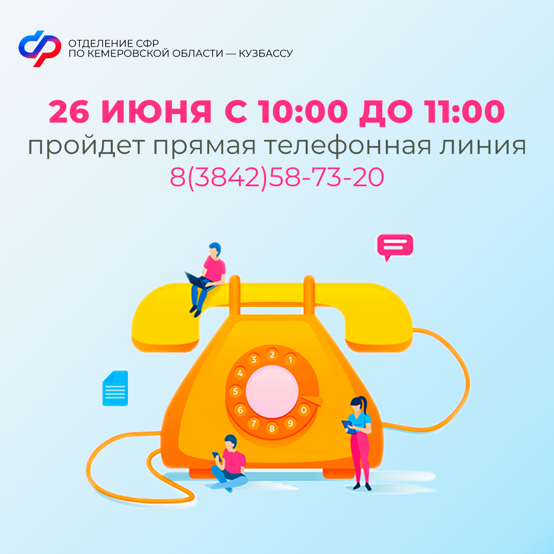 26 июня, в четверг, с 10 до 11 часов в Отделении Социального фонда России по Кузбассу пройдет телефонная прямая линия.
