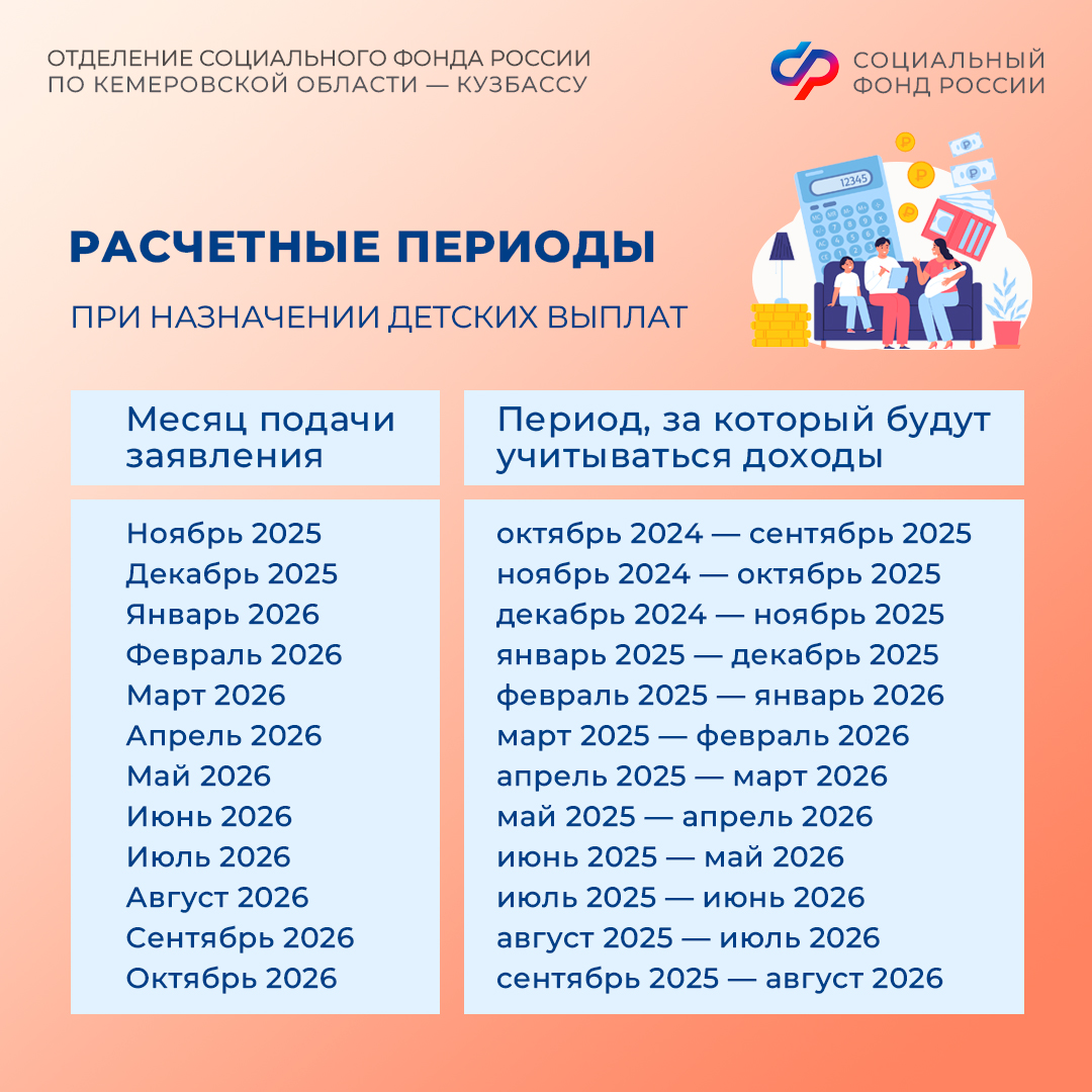 Какой период доходов учитывается при назначении детских выплат в Кузбассе?