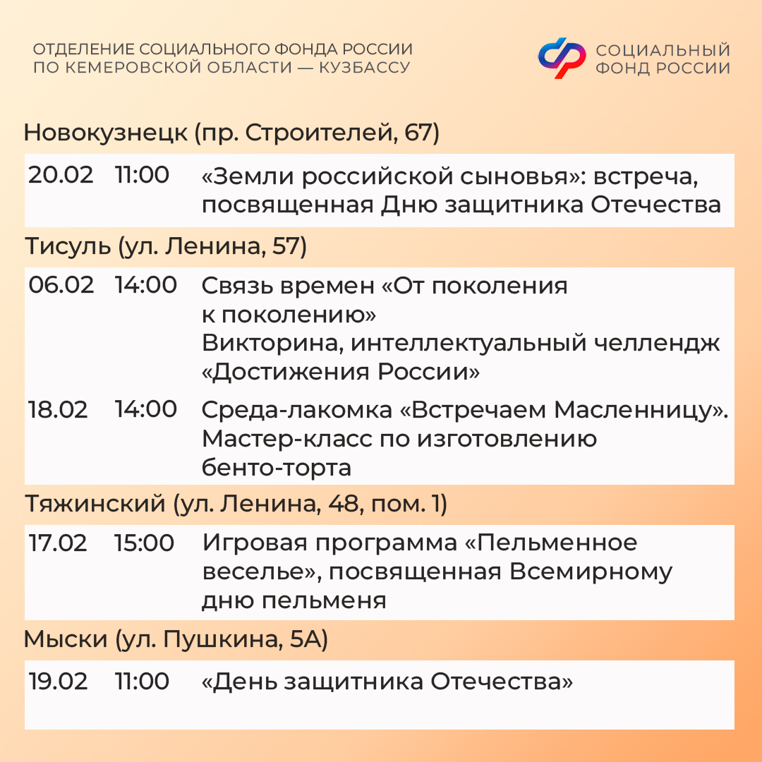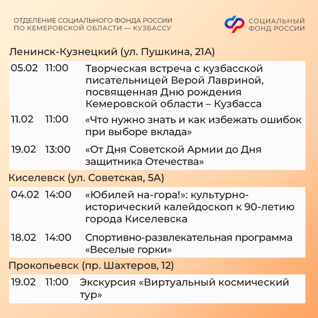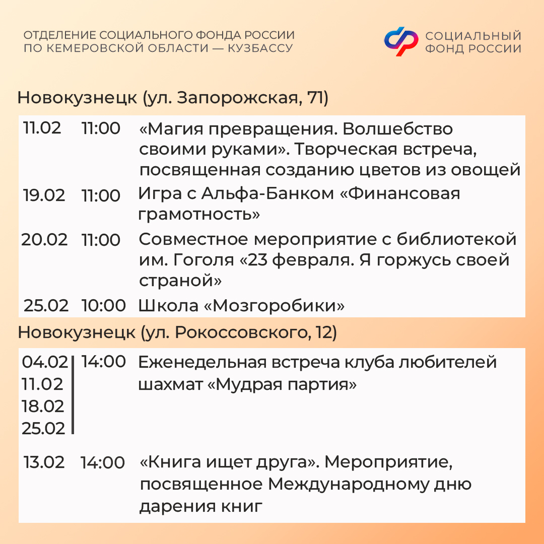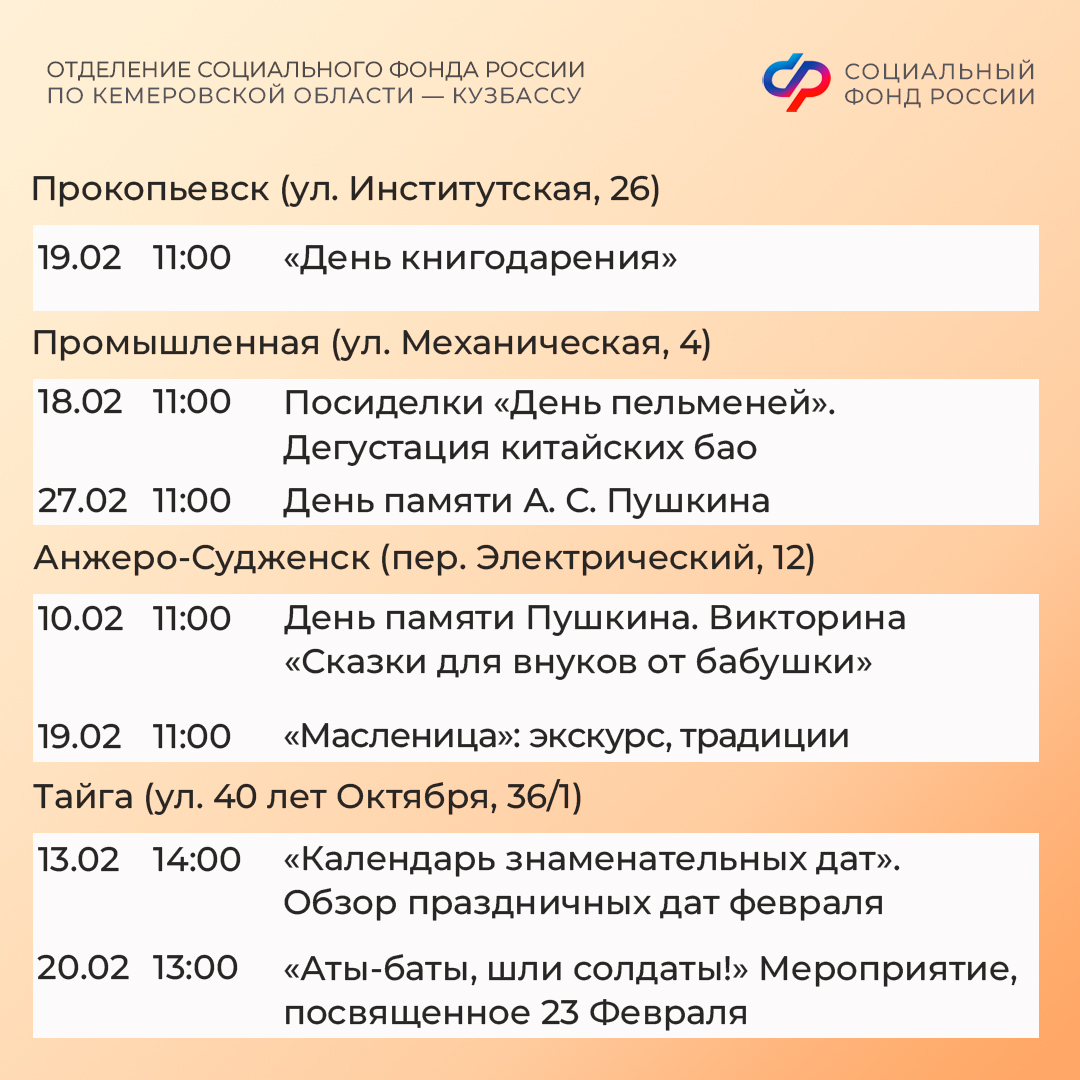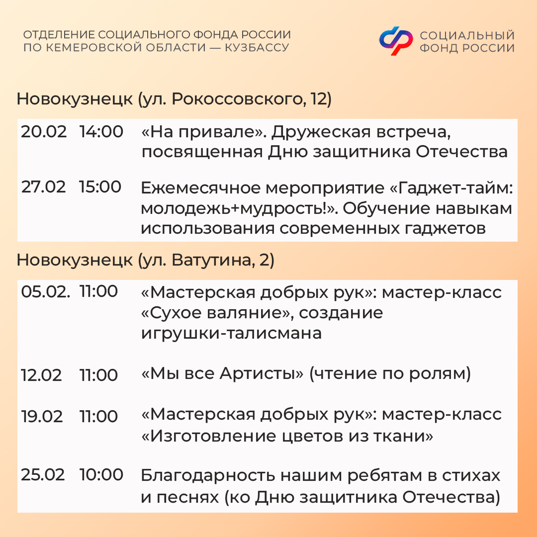 Афиша событий в кузбасских центрах общения старшего поколения в феврале