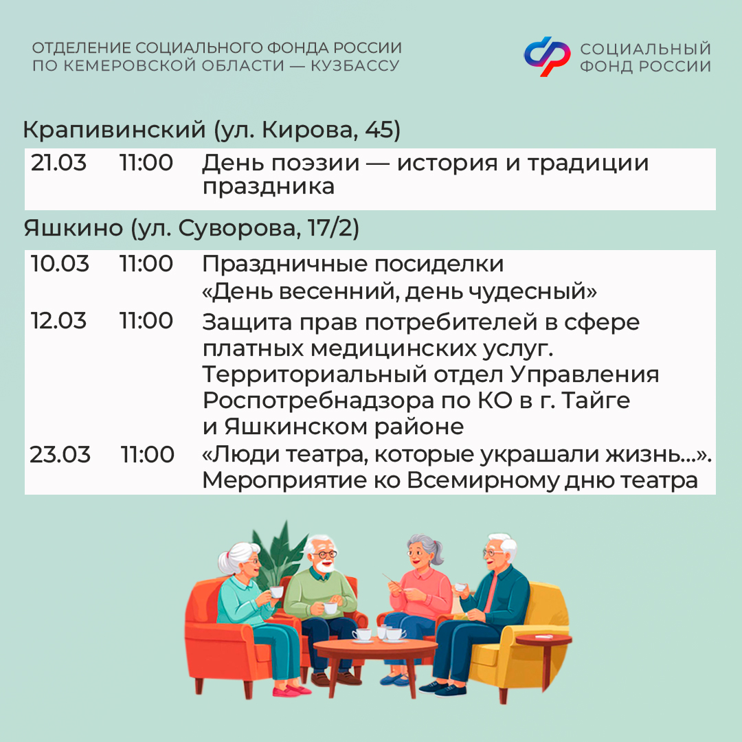 Центры общения старшего поколения Отделения СФР по Кузбассу ждут гостей в марте!